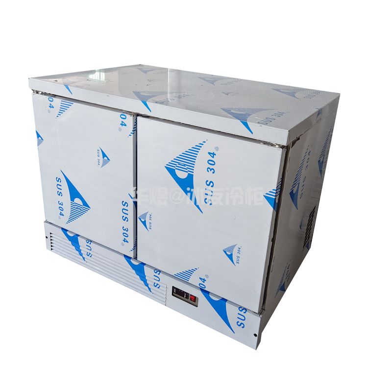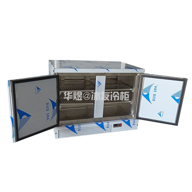 结构:客人面对冷柜:正面为左右掩门体,其它为PU保温层。底为万向轮